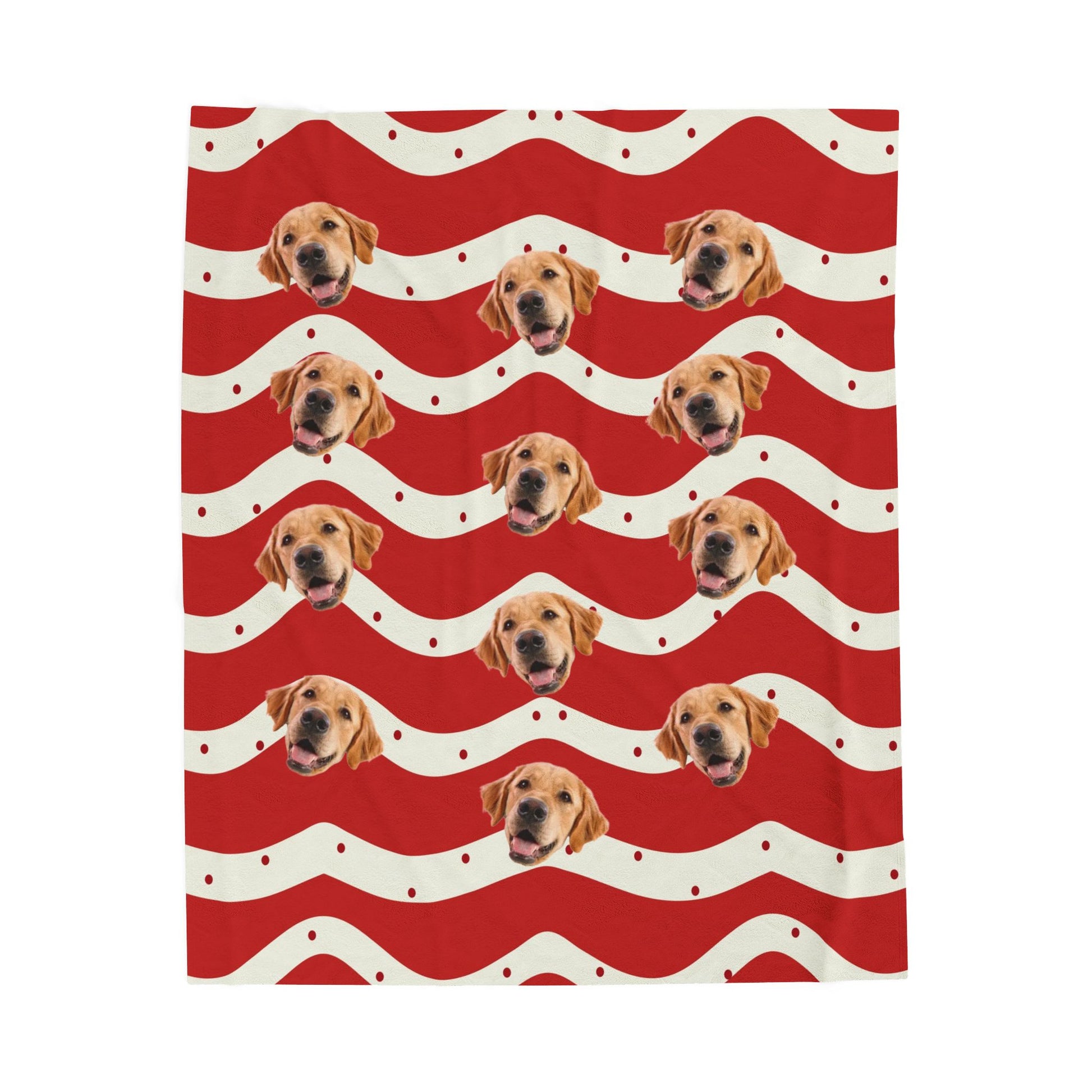 This plush velveteen blanket wraps you in cozy, familiar comfort while showing off playful, custom-printed art. The front displays rich, vibrant colors with high-detail printing — in this case a cheerful repeating dog portrait set against wavy red-and-cream stripes — while the reverse stays soft and simple. It’s medium-weight and quietly substantial, warm on cool evenings and breathable enough for year-round sofa snuggling. Durable double-stitched seams and a resilient polyester blend mean it will hold shape and color through regular use. Keep it over the couch for instant warmth during movie nights, drape it across a favorite chair to brighten a room, or tuck it into a pet-friendly corner for an inviting spot your dog will recognize.